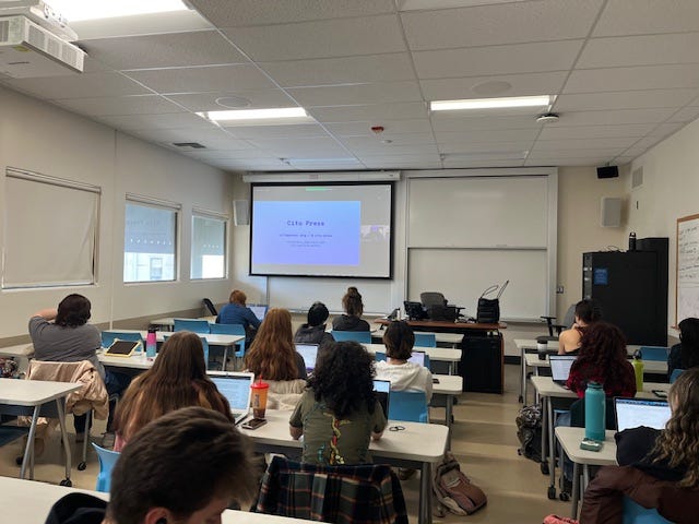 Thank you so much for highlighting our work, and for getting your students engaged with it, too! It was a pleasure to talk with them and answer their (incredibly thoughtful) questions about Cita, our authors, and more.